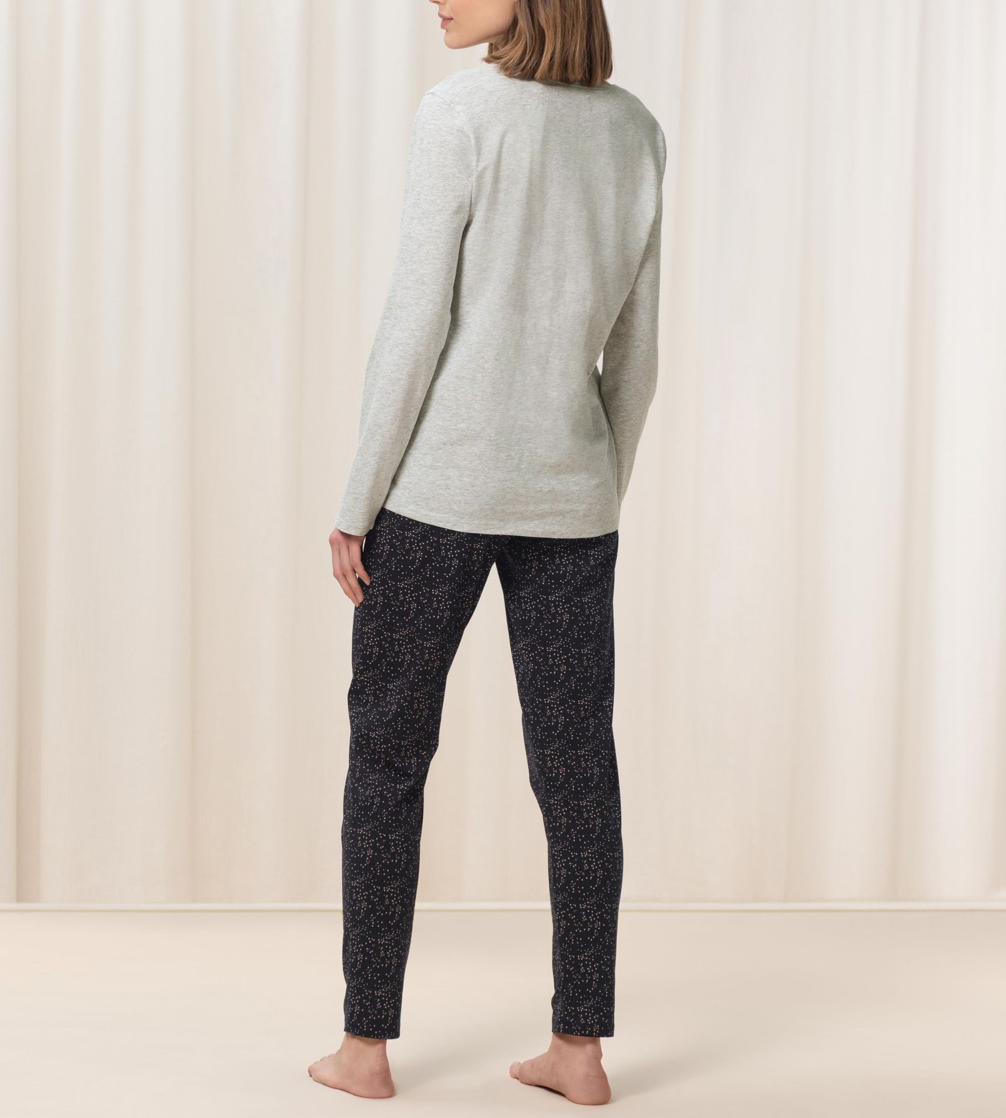 • Μακρυμάνικη πυτζάμα με παντελόνι σε ίσια γραμμη και top με όμορφο print από οργανικό βαμβάκι