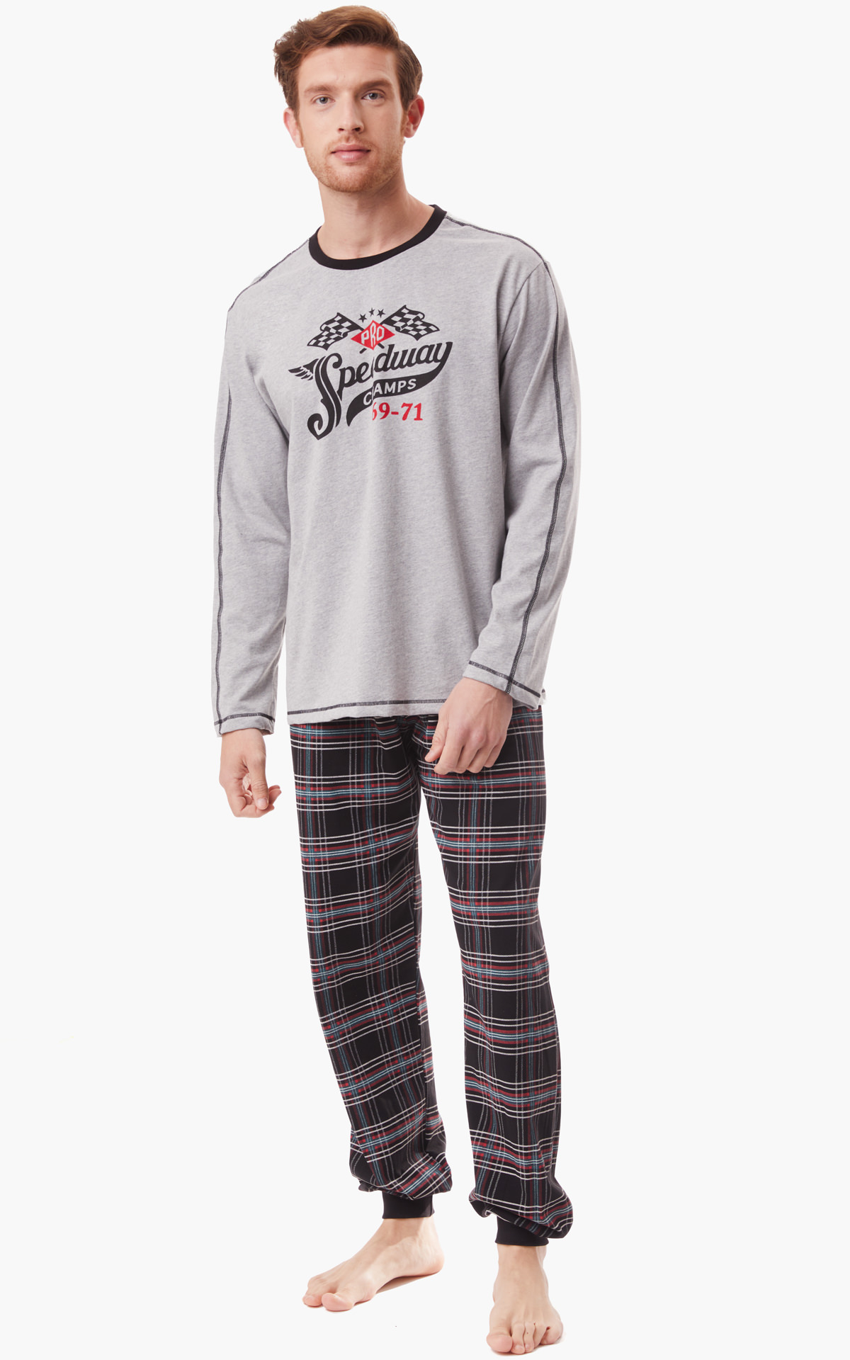 Ανδρική χειμερινή πυτζάμα από ύφασμα υψηλής ποιότητας στις αποχρώσεις του κόκκινου και του μαύρου.