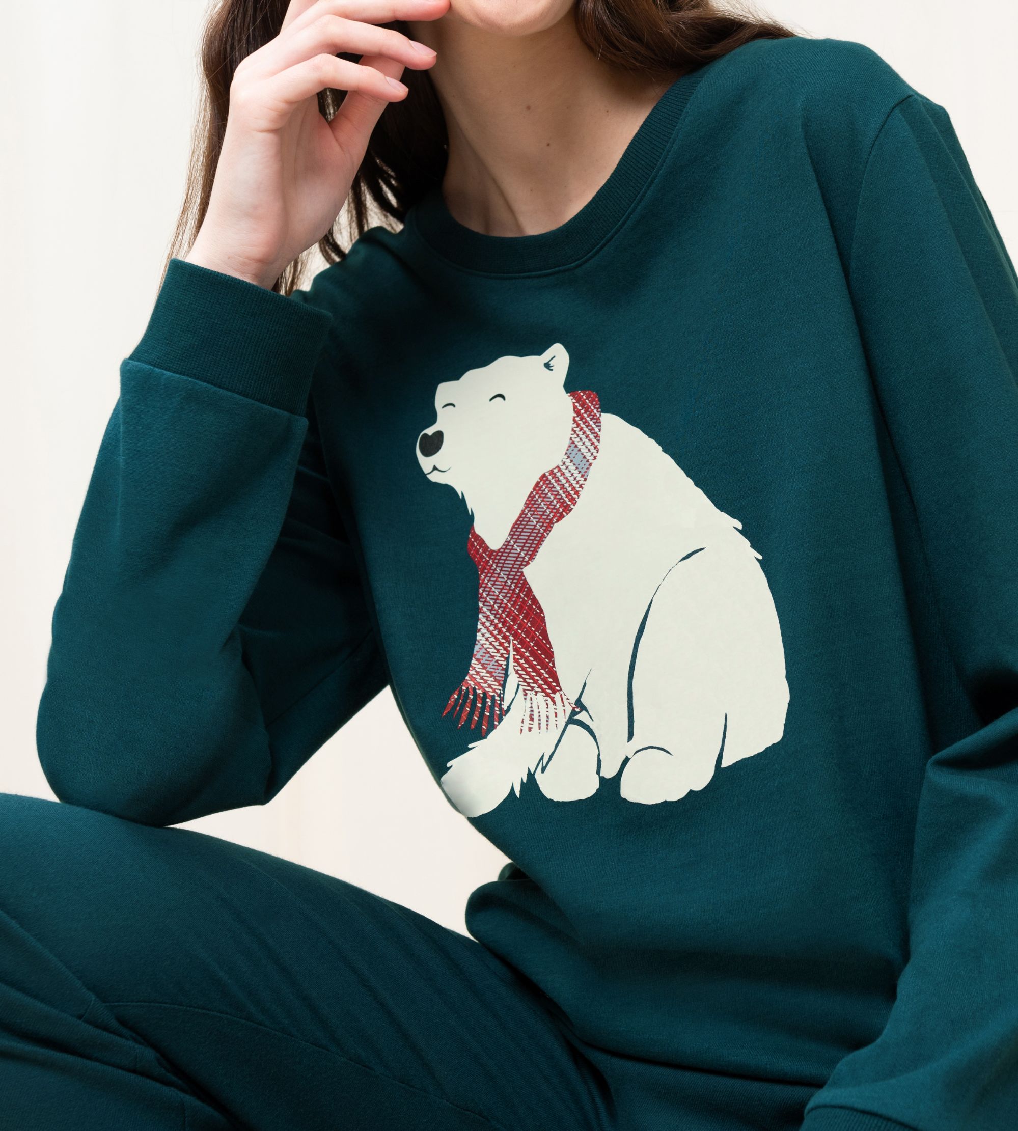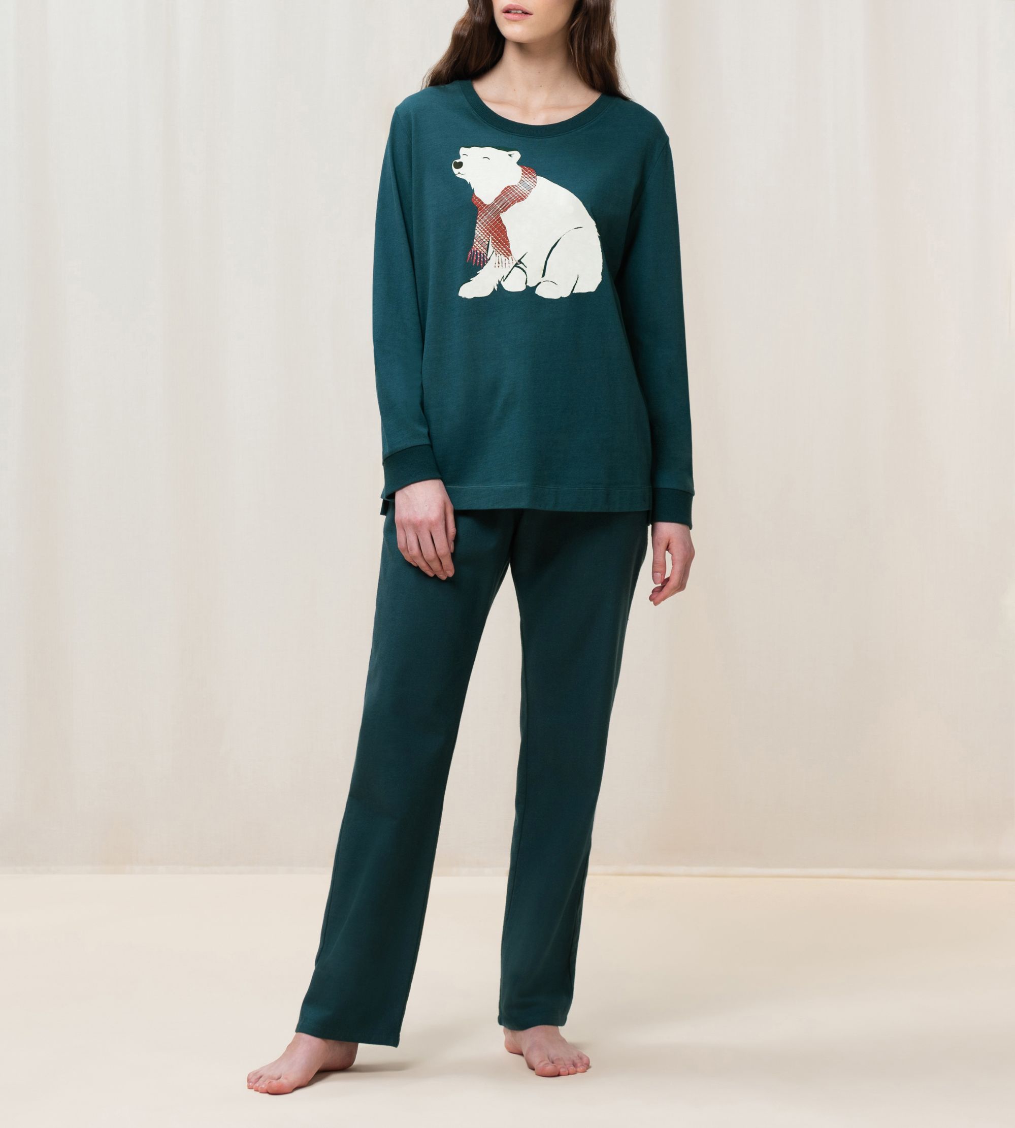 • Ζεστή πιτζάμα από οργανικό βαμβάκι και παντελόνι σε ίσια γραμμή