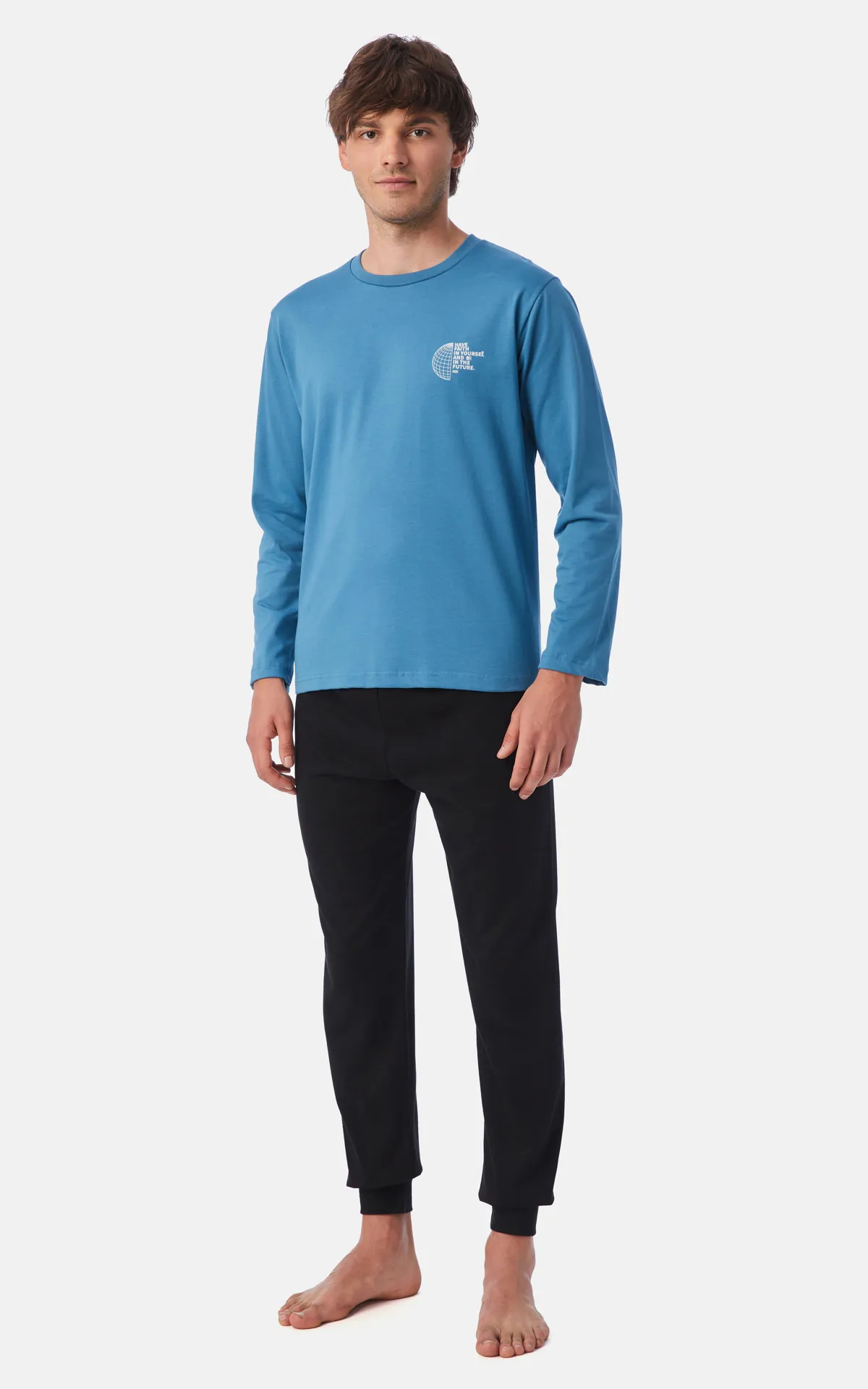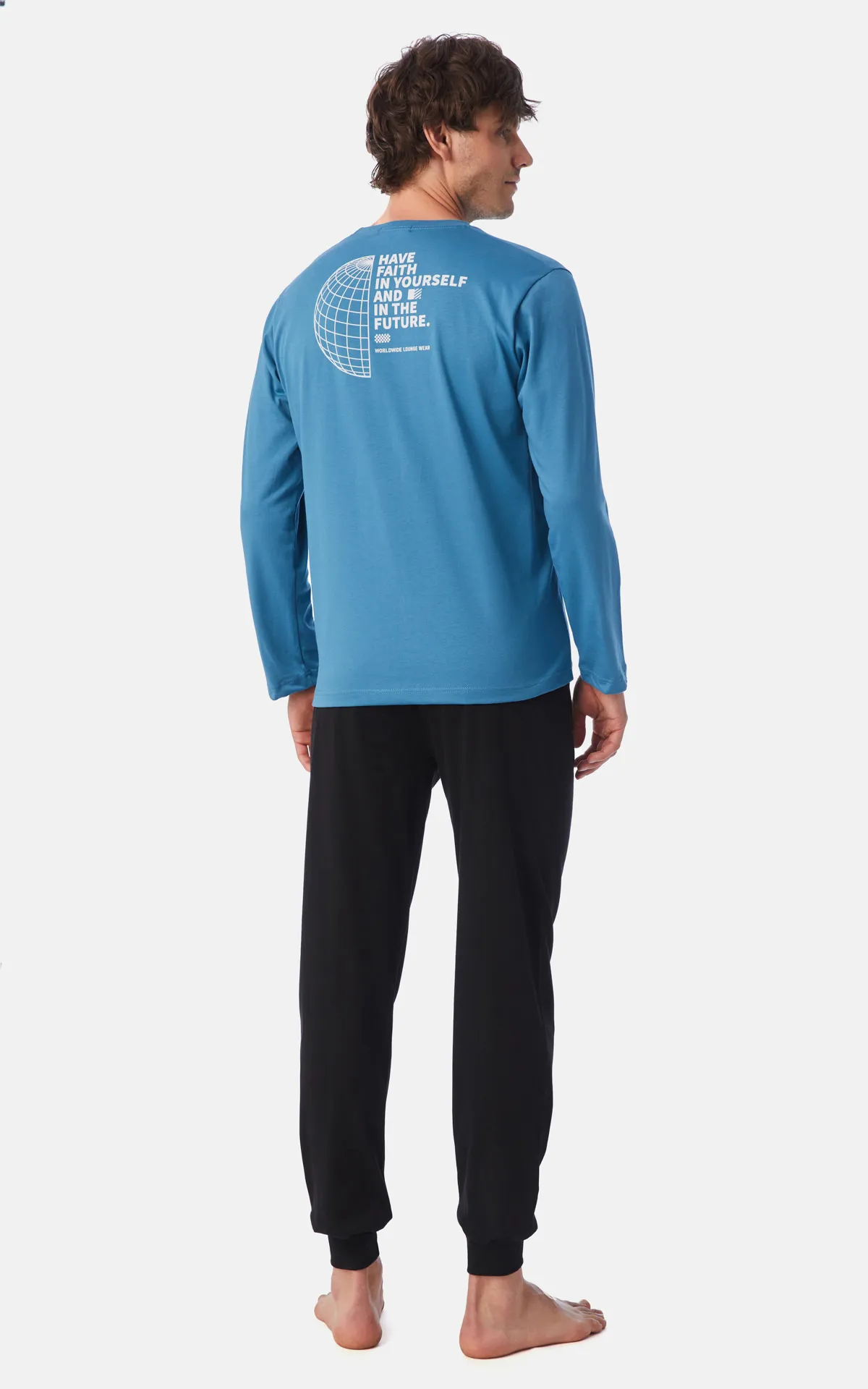 Ανδρική χειμερινή πυζάμα από 100% βαμβακερό ύφασμα, υψηλής ποιότητος. Το σετ περιλαμβάνει μπλούζα με μικρό τύπωμα στο στήθος, μεγαλύτερο στην πλάτη και παντελόνι με μπάσκες στα τελειώματα.
